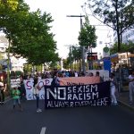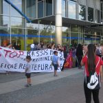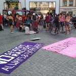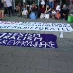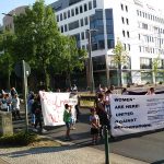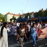 At 4pm, we gathered for a rally at the Ausländerbehörde where we made and read speeches against deportation in different languages and translated into German. Open mic speeches from women condemned the German goverment on deportations and separation of families. After the rally, around 200 of us started a lively demonstration which ended at the city centre. After making speechs and building a carrton wall with the words „stop deportation“, women and children decide to destroy this creative art as a „breaking border“ action by going through it.