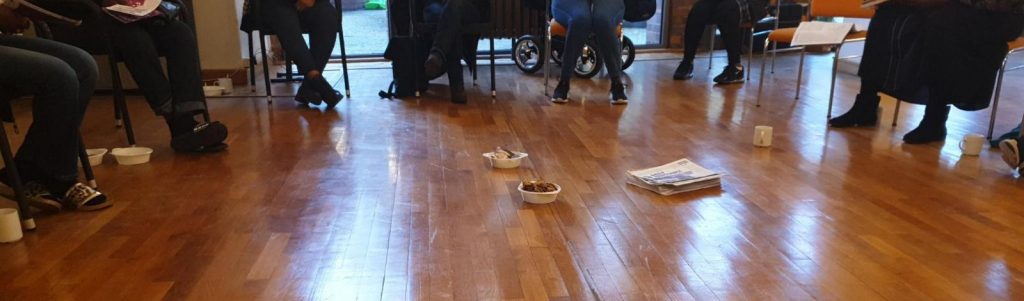 We decided to visit and organise a “women café” in Eisenhüttenstadt after Barnim für Alle called for an action day in Eisenhüttenstadt. The protestant church was kind enough to offer us a space for this purpose.