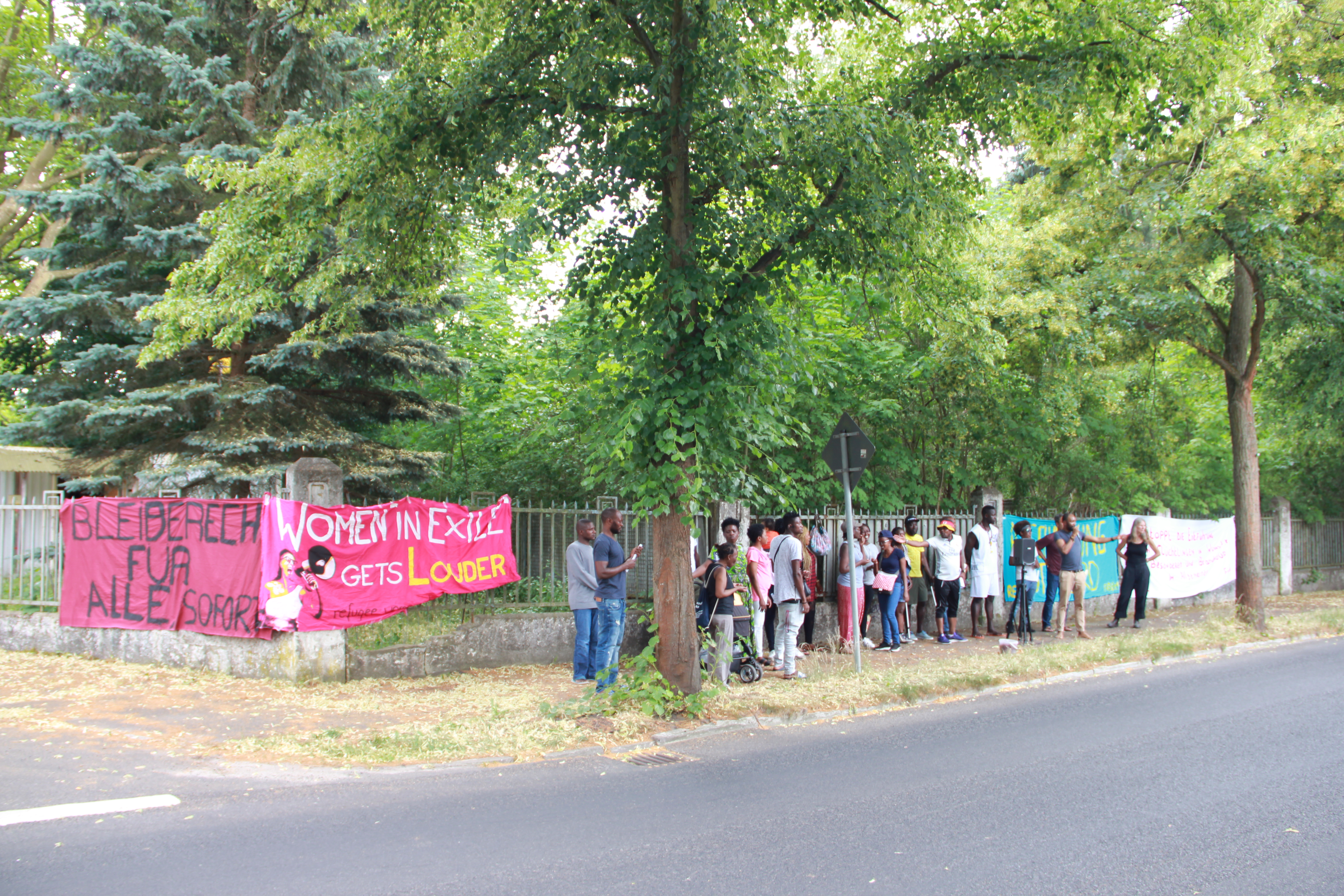 On 20th june ,the international refugees day, women in exile and friends together with refugee emancipation decided not to be in the boardrooms discussing the matters concerning refugees but rather make a solidarity rally in-front of Wünsdorf camp in Brandenburg. Wünsdorf is part of the BAMF first receiving centre in Eissenhüttenstadt. We were joined by a few members from the community, who were kind enough to bring us cherries from their gardens because the day was very hot.