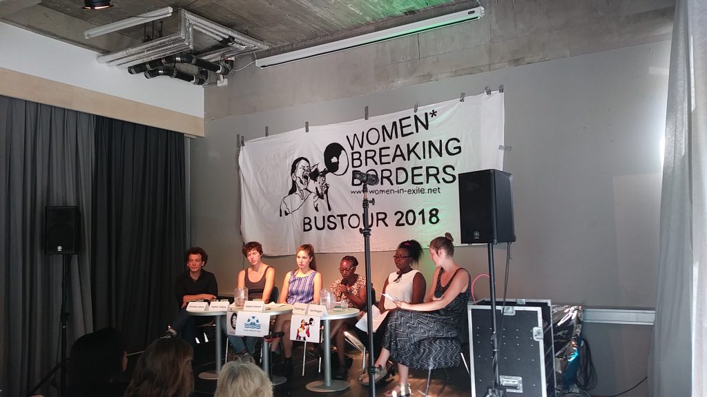 During the Bus Tour, the fact of racial profiling from the police was exposed, which shows once more the racism in German and Europe as a whole. Women connected racism to the violence and expropriation of colonialism which reveals patriarchy and puts women in a particularly sensible situation when fleeing or migrating. They become victims of trafficking, prostitution, sexual violence, underpayment, policies which put all kinds of obstacles in the way of family reunification and causing separation from children.