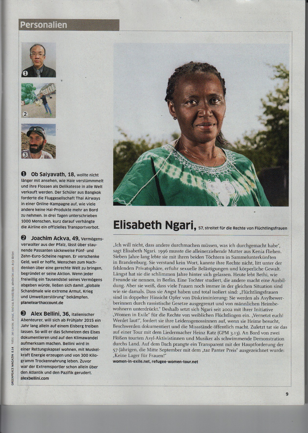 Greenpeace Magazin, 6.14: Personalien: Elisabeth Ngari