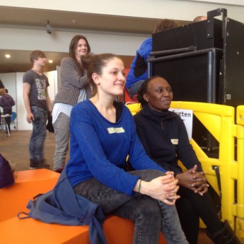 Auch Bethi und Madeleine haben eine Arbeitsphase mit den Schüler_innen gestaltet, um die Perspektiven von Frauen zu beleuchten, die geflohen sind und aus eigenen Erfahrungen die Lebenssituation in Lagern in Deutschland kennen. Bei dem Workshop unterstützte das „Refugee Unistreikkommitee“ der „Freien“ Universität Berlin Women in Exile unter anderem durch Übersetzungen.
